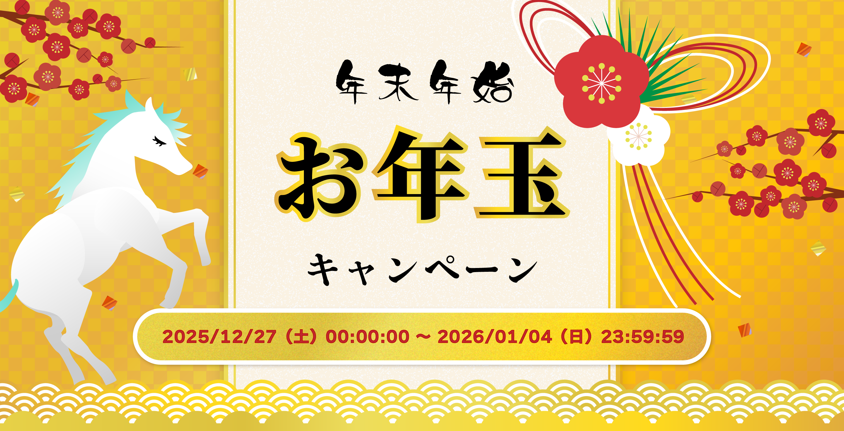 - 1. 2025/12/27(土)00:00:00 〜 2026/01/04(日)23:59:59 の間に「対象の案件」をご利用いただく
